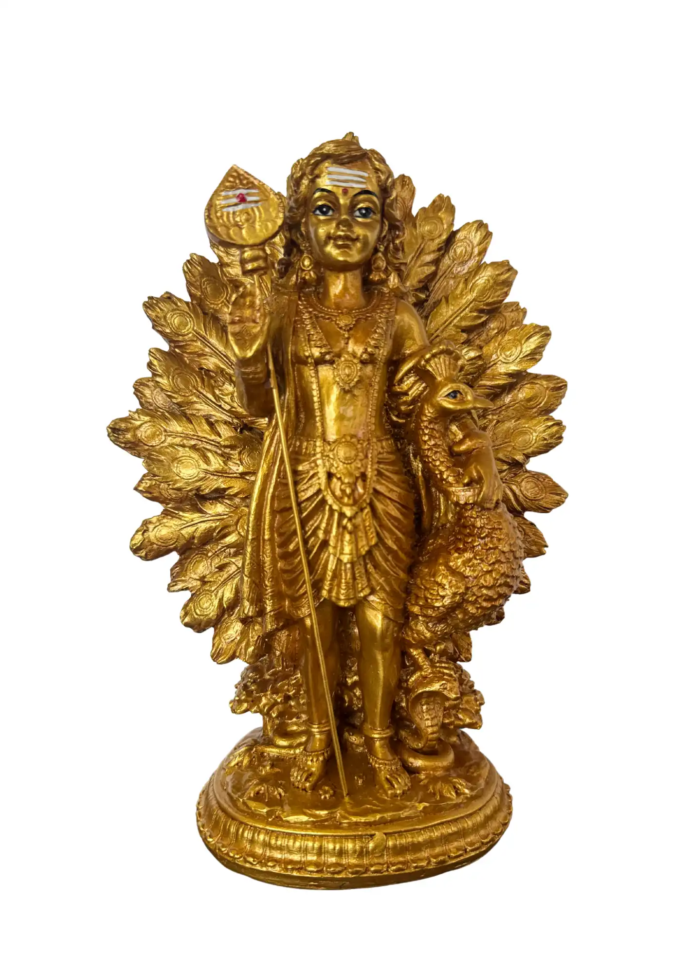 Lord Murugan Idol with Peacock & Feather Aura: Symbol of courage, protection, and divine grace.