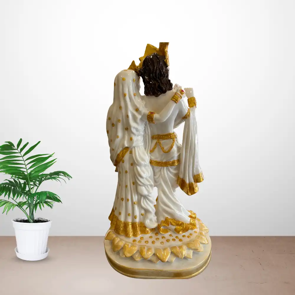 Marble Dust 16-inch Radha Krishna Idol | Krishna Playing Flute with Radha Statue for Home
