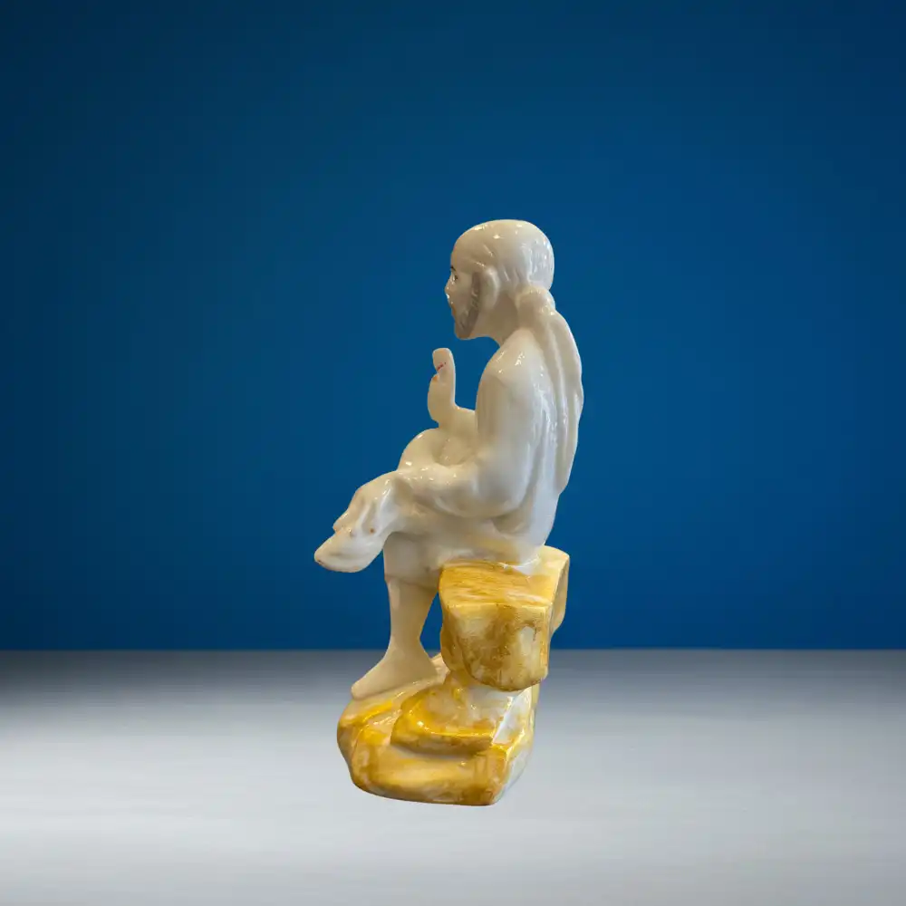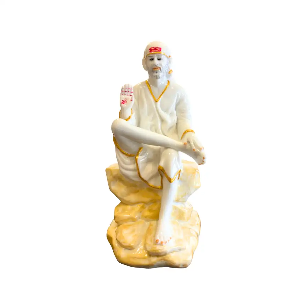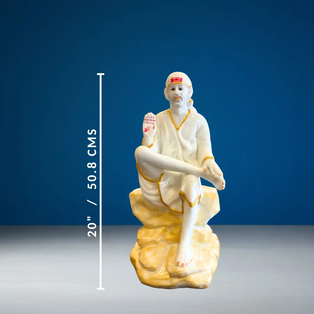 This 20-inch Sai Baba idol features him in a serene seated pose, with one hand raised in blessing, symbolizing his divine protection and guidance. Crafted with intricate details and a smooth finish, this statue brings a sense of peace and devotion to any space.