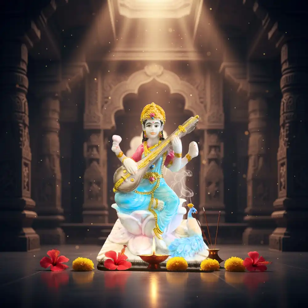 Perfect for your home temple, pooja room, or as a decorative piece for any spiritual or learning space, this Saraswati statue is a beautiful way to invite wisdom and creativity. It also makes a thoughtful gift for festivals, housewarmings, or educational milestones.