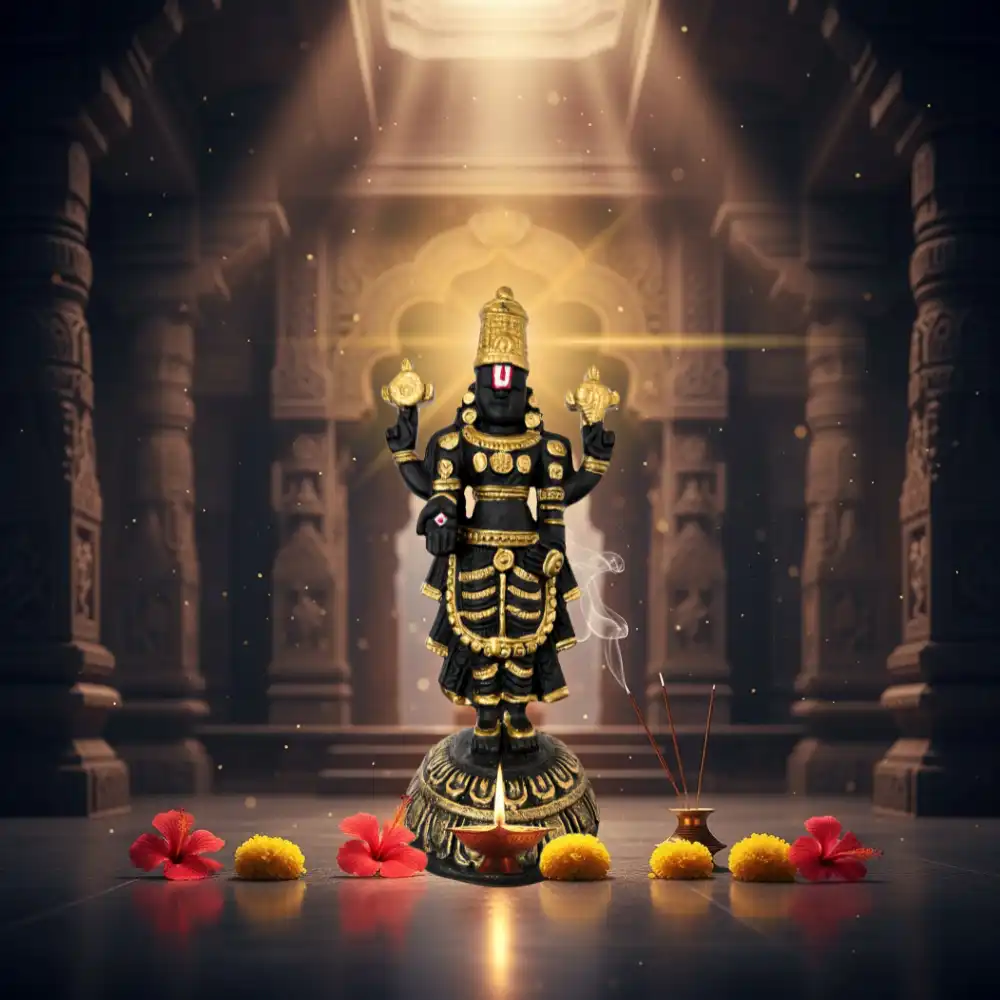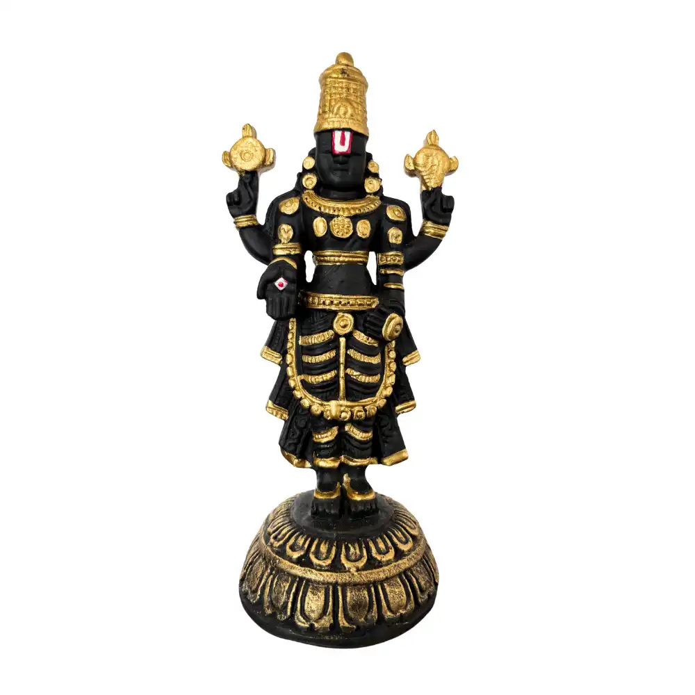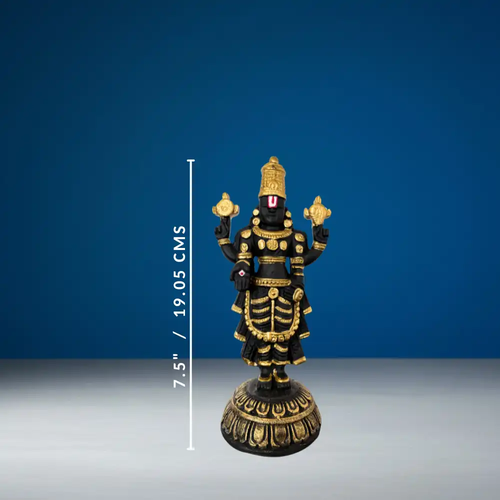 This elegant 7.5-inch Tirupati Balaji idol depicts Lord Venkateswara in a divine standing posture, symbolizing wealth, protection and spiritual grace. The finely carved details, rich golden accents and traditional design make it perfect for enhancing your pooja room, home temple, living room, office desk or gifting purposes.
