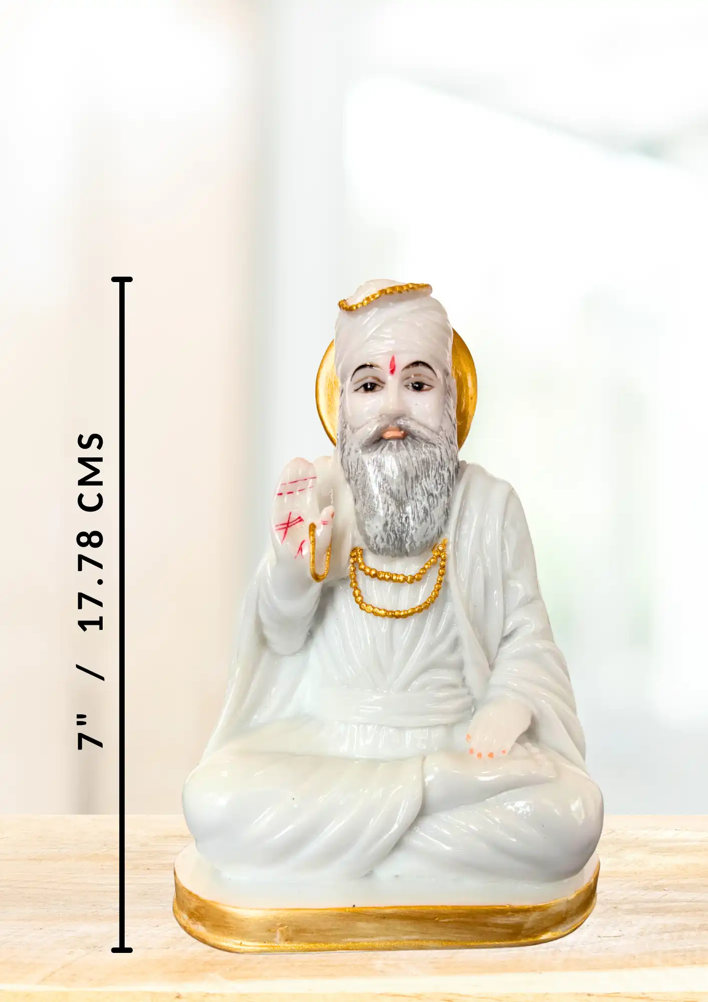 Marble Dust 7-inch Guru Nanak Ji Idol Sitting on Base | for Home Temple and Spiritual Décor