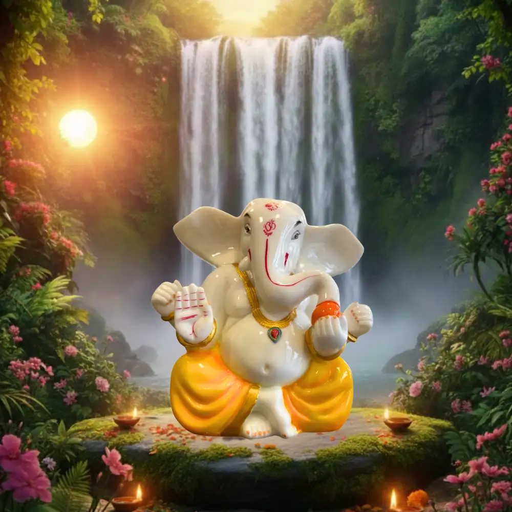 A finely crafted Lord Ganesha idol that adds spiritual charm and positivity to any space. Designed with intricate detailing and premium craftsmanship. Perfect for home décor, pooja rooms, offices, and gifting. Size: 8 inches (20.3 cm). Made in India.